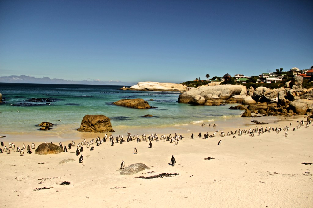 Os pinguins africanos têm geralmente entre 60 e 70 cm de altura e costumavam ser chamados de “pinguins burros” por causa dos gritos que fazem. São muito mais elegantes na água do que em terra. Eles têm uma forma fofa de caminhar que os faz parecer um pouco bêbados, mas são ótimos nadadores! É uma das experiências mais giras que se pode ter na África do Sul e definitivamente algo para incluir durante sua estadia.