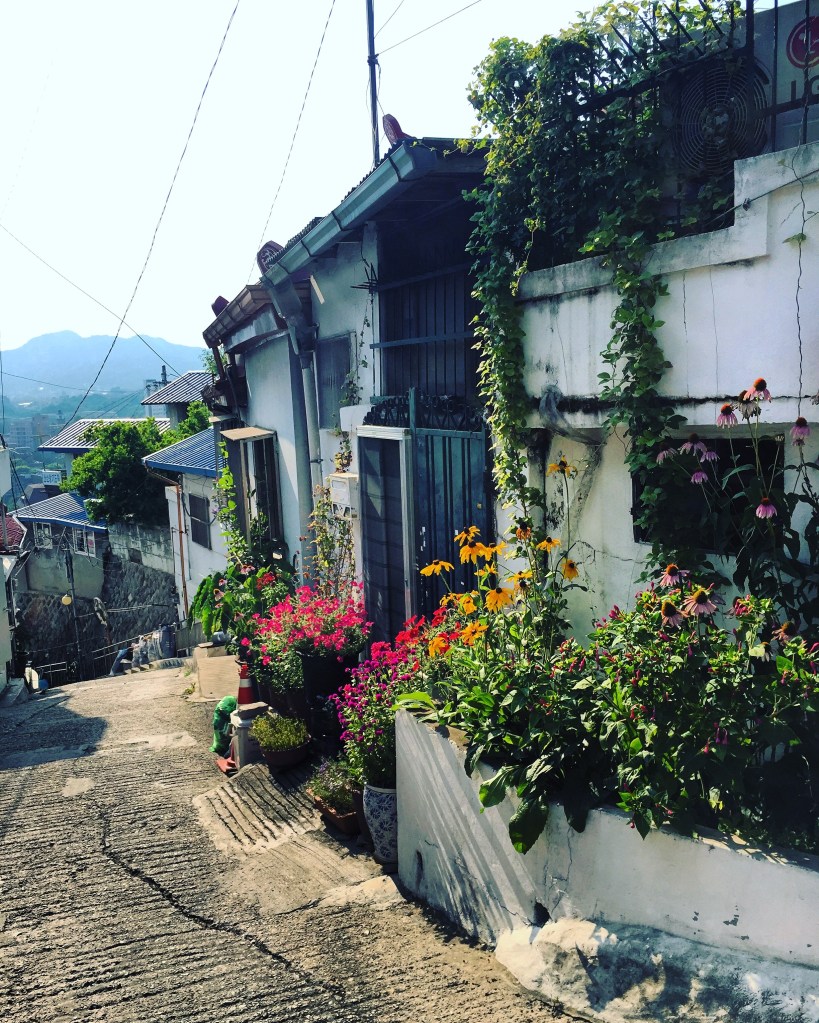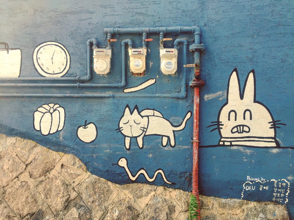 Com murais pintados por todos os becos, deixe-se perder enquanto explora a aldeia. Ao subir as escadas, não se esqueça de se virar e apreciar a vista panorâmica de Seul. Embora as escadinhas sejam difíceis de percorrer, existem muitos murais e esculturas coloridas que tornam esta aldeia divertida de explorar a pé. Além disso, o bairro foi utilizado em muitas filmagens, por isso, se é fã de K-drama, pode reconhecer algumas das artes!
